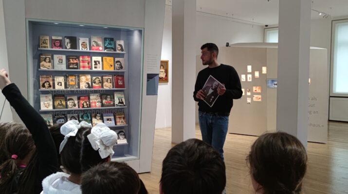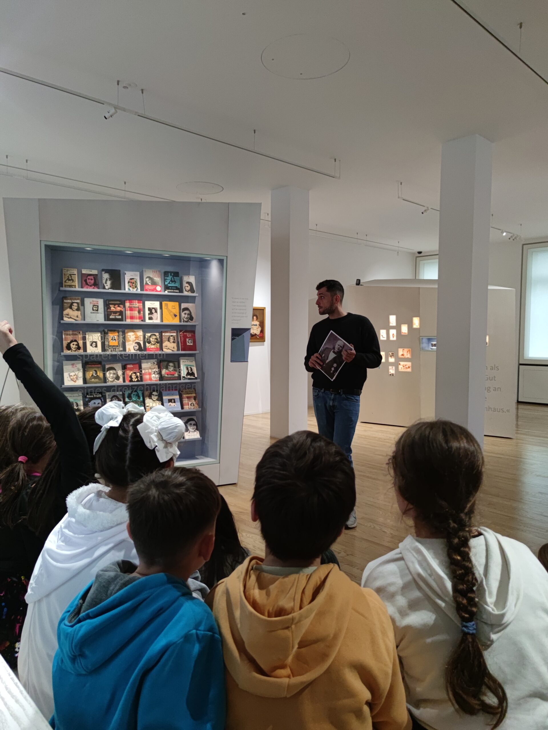 Als wir angekommen sind, wurden wir durchgecheckt, ob wir nichts Gefährliches dabei haben. Danach haben wir unsere Sachen in den Aufführungsraum gebracht. Dann haben wir eine Führung durch das Museum bekommen. Emilija (4a) und Oskar (4a) haben einen Teil der Führung übernommen. Wassili hat mit ihnen in der Projektwoche alles vorbereitet und geübt. Den Rest der Führung hat Wassili gemacht. Danke Wassili für die großartige Führung mit vielen Informationen!