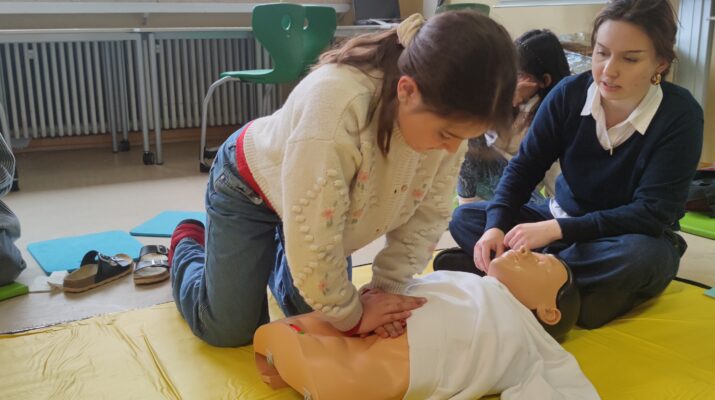 Am Montag, dem 12.1.2026 hat die 4a den Ersten Hilfe Kurs ausprobiert. Am Anfang lernten wir wie man einen Fixierverband macht. Kurz darauf lernten wir wie man eine Fingerkuppe verarztet. Dann haben wir die drei K’s gelernt, also die stabile Seitenlage. Zuerst den Kaktus, dann das Kinn und noch das Knie. Danach haben wir einen Druckverband ausprobiert. Am Dienstag ging es weiter. Zuerst sind wir die Sachen von Montag nochmal durchgegangen und haben die drei K’s wiederholt. Kurze Zeit später haben wir angefangen die Herzmassage zu probieren. Alle haben es sehr gut gemacht. Dann haben wir gelernt was man am Telefon sagt, wenn man die 112 gerufen hat. Die 5 W’s: wer ruft an, wo ist es passiert, wie viele sind verletzt, was ist passiert und ganz wichtig: warten auf rückfragen. Es hat sehr viel Spaß gemacht. Vielen Dank an Kiara die denn Kurs gemacht hat.